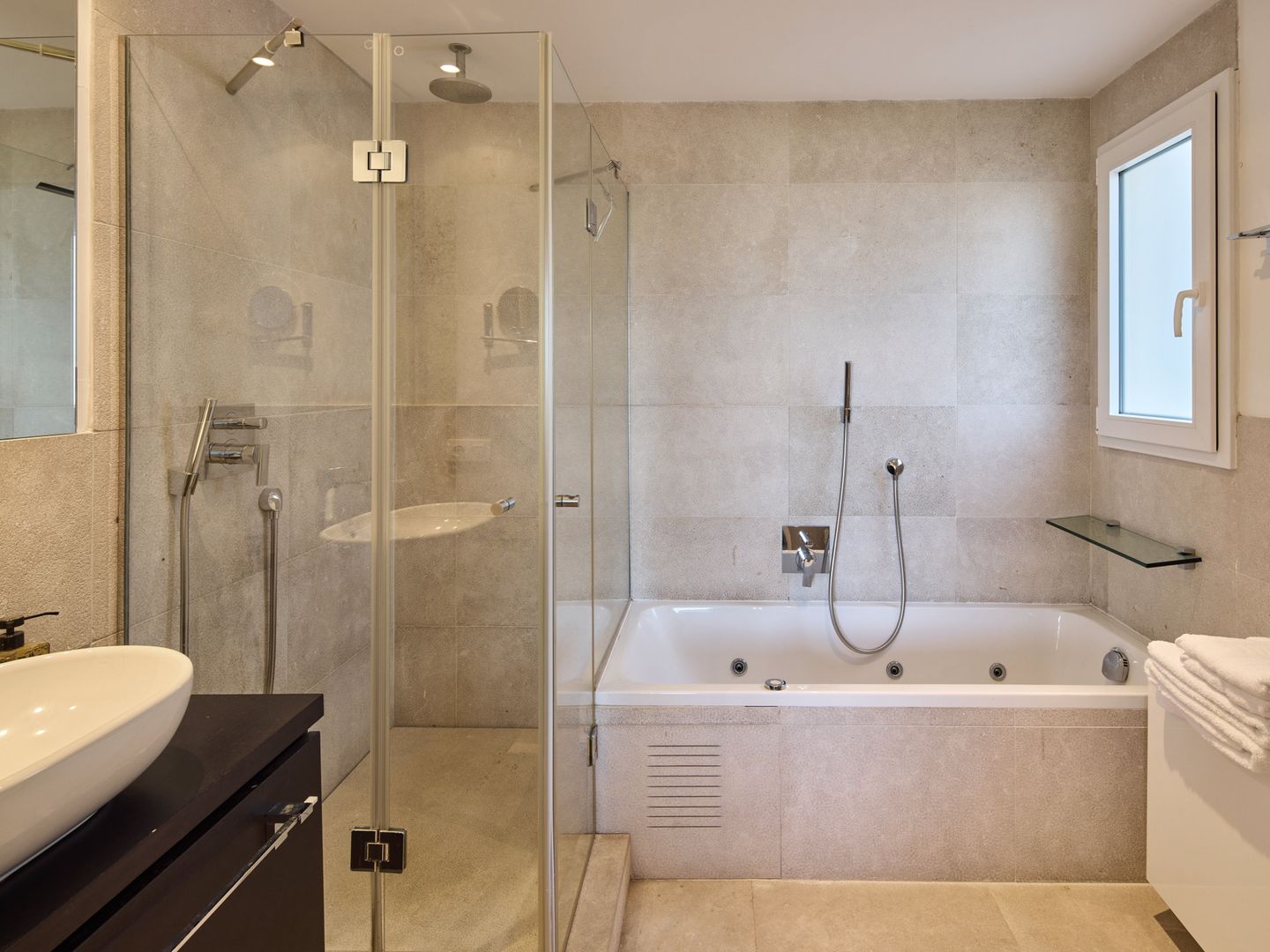 Die Wohnung verfügt über Klimaanlage und Fußbodenheizung in allen Räumen, die ganzjährig für angenehme Temperaturen sorgen.