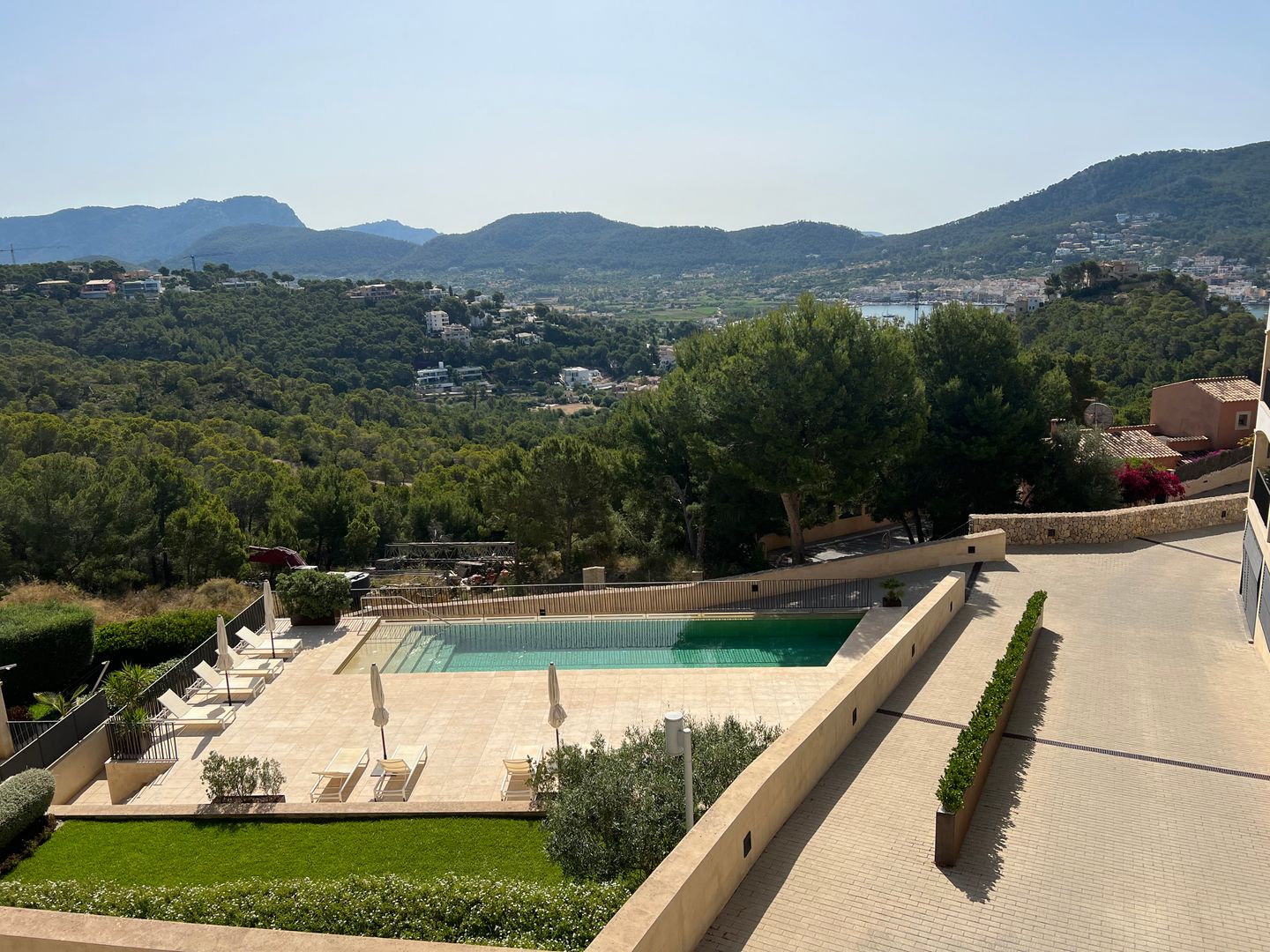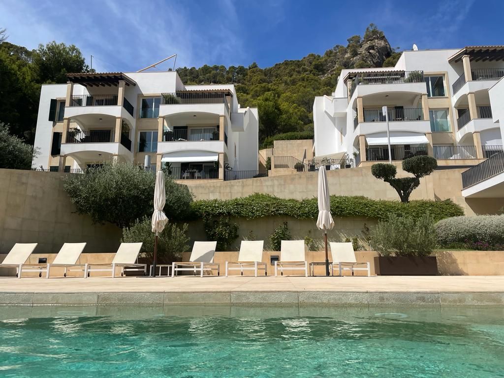 Die Anlage bietet einen Gemeinschaftspool sowie gepflegte Außenanlagen und überzeugt durch ihre ruhige, hochwertige Wohnlage – nur etwa 15 Gehminuten hinunter zum Hafen von Port Andratx. Ein Stellplatz in der Anlage ist vorhanden, ein Aufzug ist ebenfalls gegeben.